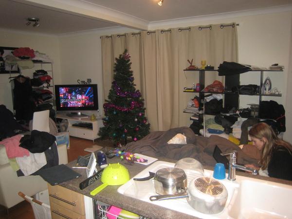 Pendant les travaux dans la chambre, c'est le camping dans le living room